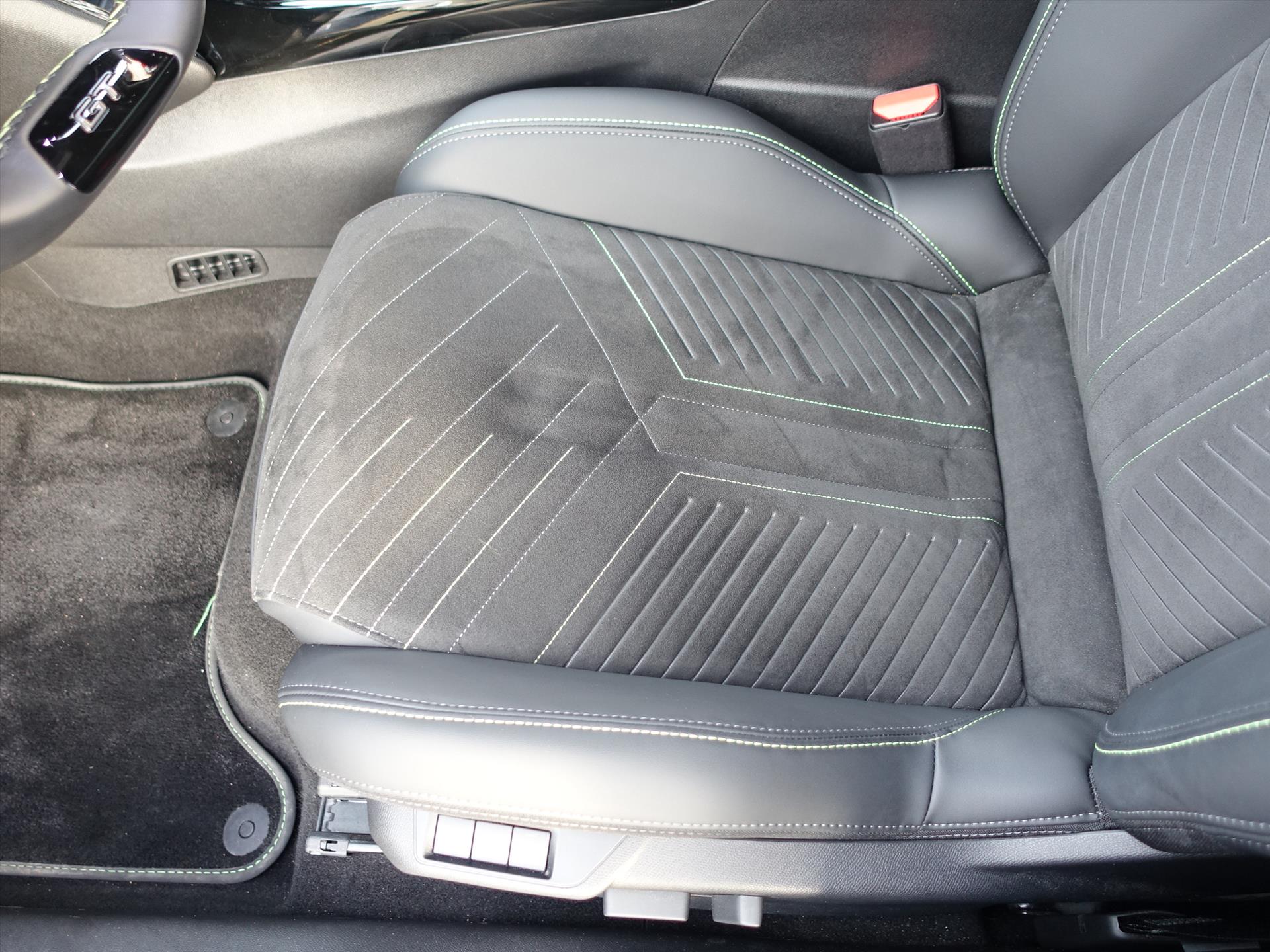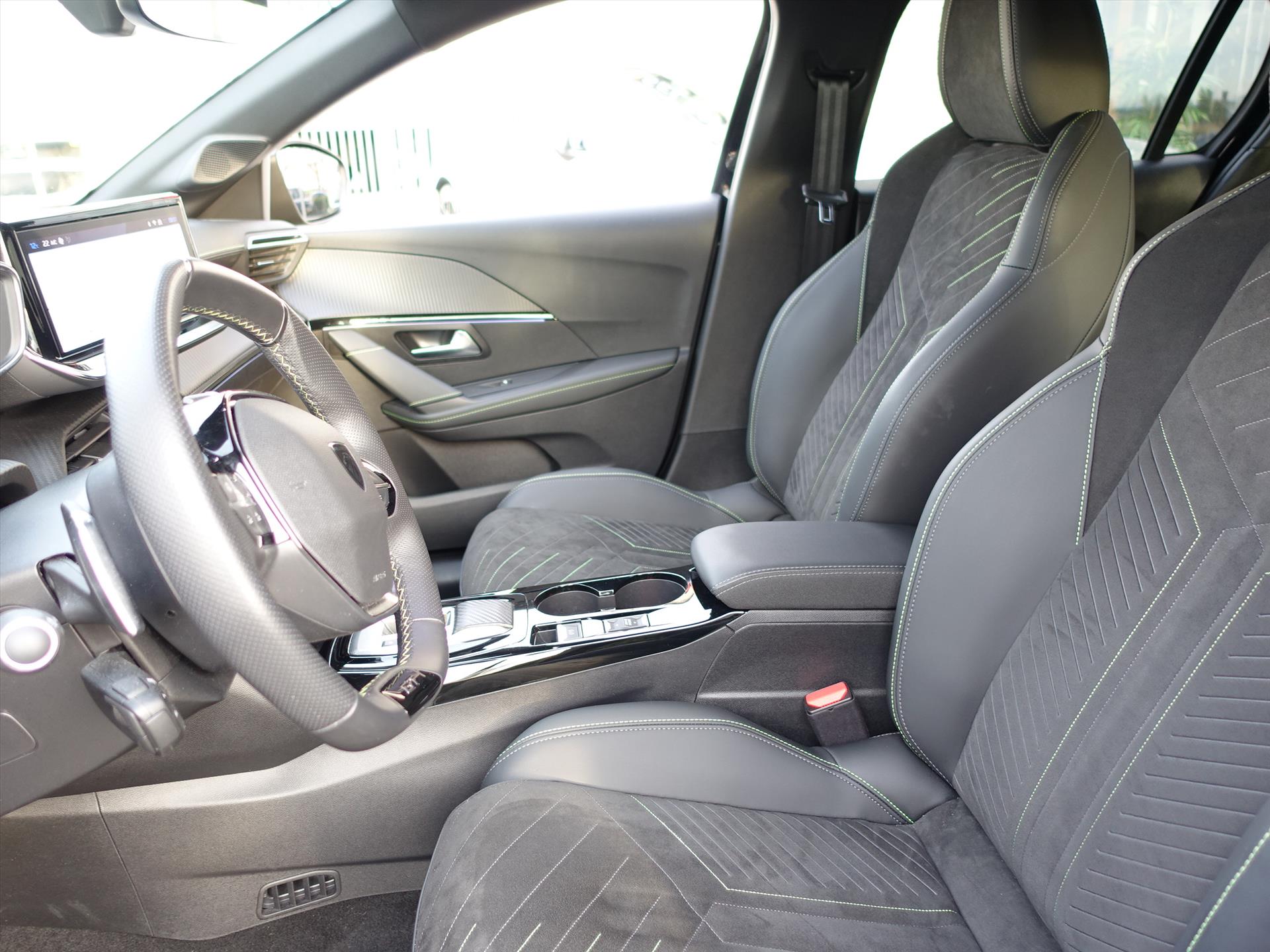 Armsteunen op de voorportieren bekleed met kunstleder met groen sierstiksel